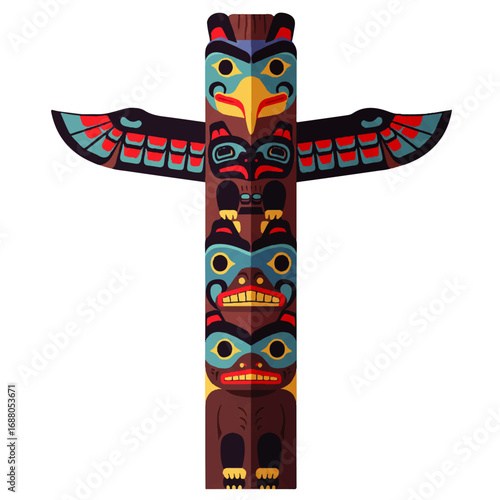 Colorful Indigenous Totem Pole with Wings Illustration.