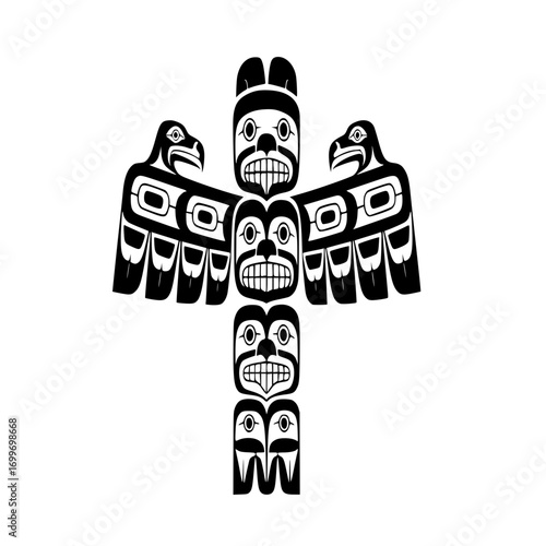 Haida Traditional Carving Totem – Black Silhouette Vector Illustration of Indigenous Canadian Art