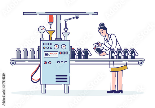 Industrial icon set with factory, assembly line, manufacturing, machinery, conveyor belt, welding, robotics, automation, engineering, gears icon. Simple line vector