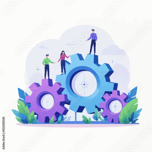 Vibrant gears interlock signifying teamwork synergy and success