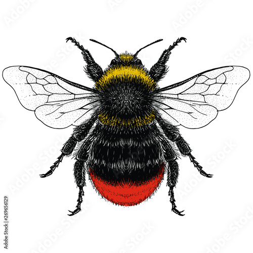 Bumblebee (bombus terrestris) illustration, drawing, engraving, ink, line art, vector