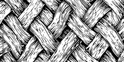 Seamless black and white woven basket crosshatch design for decoration and textiles