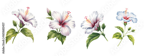 A collection of isolated tropical leaves and exotic flowers, vector illustration elements for summer poster design and botanical backgrounds