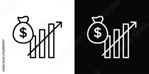 Modern flat design icon featuring a single black line of a growing financial graph symbolizing inflation or high cost of living for use in app ads, web banners, buttons, and ui ux interface elements