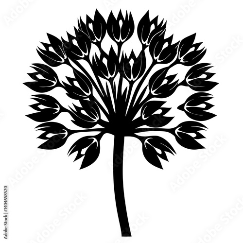 Allium Flower Black And White, Vector Template for Cutting and Printing