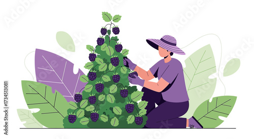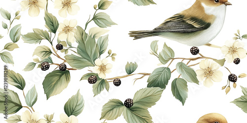 Blackberry Tree Bearing Fruit | Hand-Painted Watercolor Flat Vector Art.