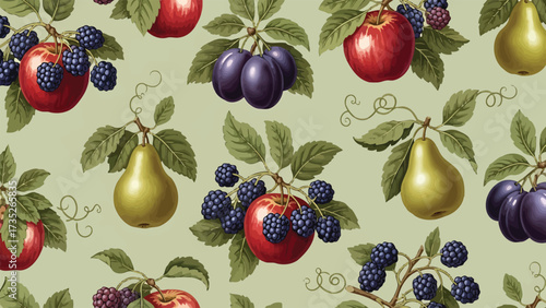 Vector illustration seamless pattern of blackberries and red berries for printing on fabric or wallpaper.
