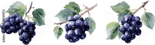 watercolor of Dark Ripe Fresh Blackberry, vector, isolated on a white background.