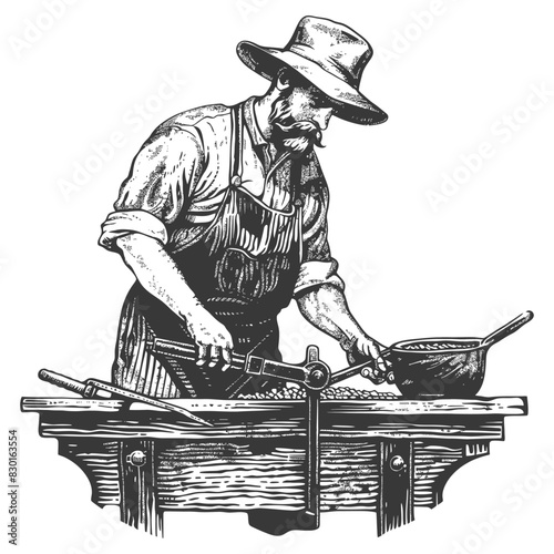 blacksmith in action full with old engraving sketch style