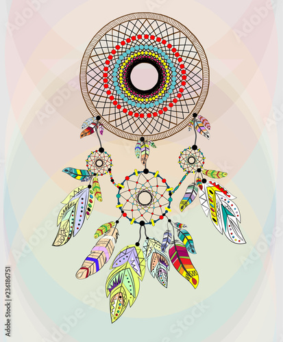 Vintage ethnic hand drawn boho style design with mandala ornament tribal feathers.