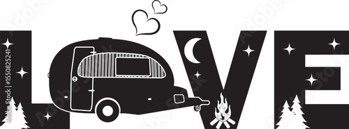 Caravan Trailer Vector Illustration Camping Camper Clipart Design