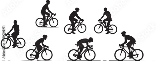 Professional Cyclist Silhouette Set: Road Racing, Time Trial Bicycle, Athletes Training, Sport Competition, Bike Rider, Fitness and Healthy Lifestyle