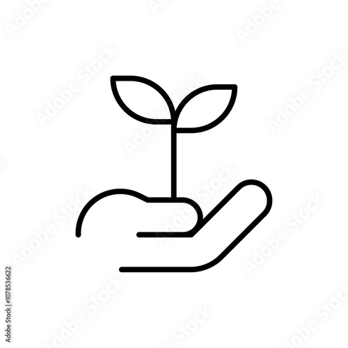 Open hand holding two sprouting leaves, representing nature conservation and environmental awareness