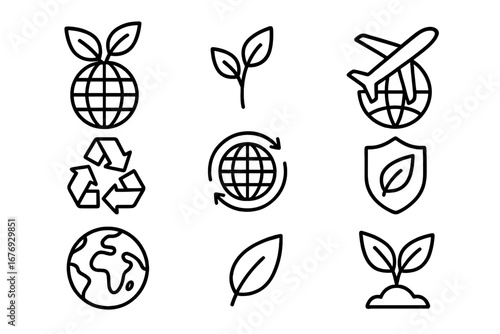 Eco friendly symbols for environmental protection, sustainable living, global conservation, recycling, natural resources, and green energy concepts