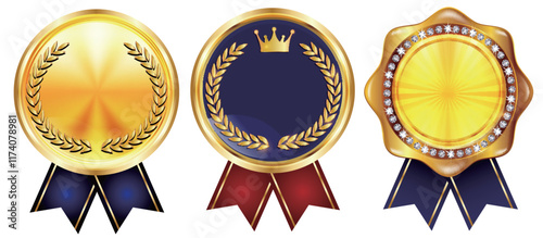 金のメダルの新商品・newを訴求するフレームデザイン素材セット(ベクター 広告 LP バナー リボン あしらい)