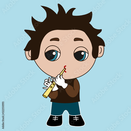 Vector Cartoon illustration of a Happy Guitar Music Player