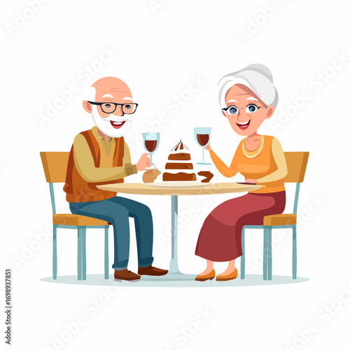 Flat vector nomadic family making tea outside traditional desert tent with camels resting nearby. Solid earthy colors, no gradients, cultural desert lifestyle illustration
