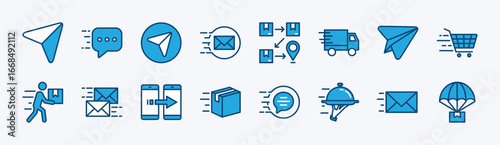Food Delivery Icons. Line style icons of food delivery platforms: app home screen, food category grid, star rating, review icon,