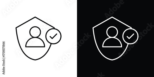 Authentication icon in a black stroke vector design and flat solid version on white background