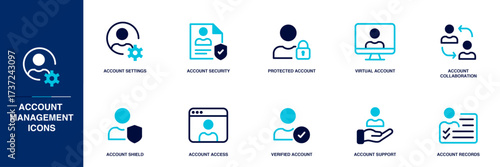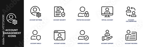 User Account icon set. Containing personal profile, password, login, username, access, avatar, connect, privacy, add friend and more. Editable line icons. Vector illustration.