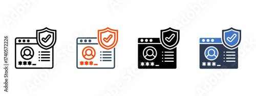 Web Profile Multiple Style Icon Design Vector - Web page with user account details, symbolizing online profile, registration, or account data