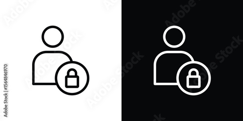 Account Lock Outline Icon Design Vector - user avatar with a small padlock, representing account security, user privacy, and login protection