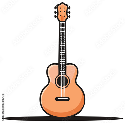 Musical instrument - acoustic cartoon guitar with strings on a w