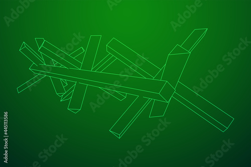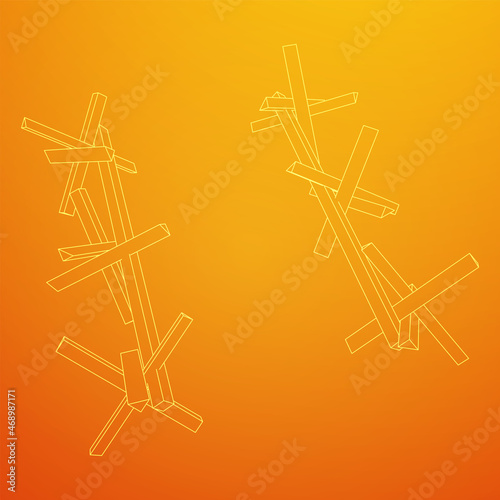 Hedgehog antitank defence. Wireframe low poly mesh vector illustration.