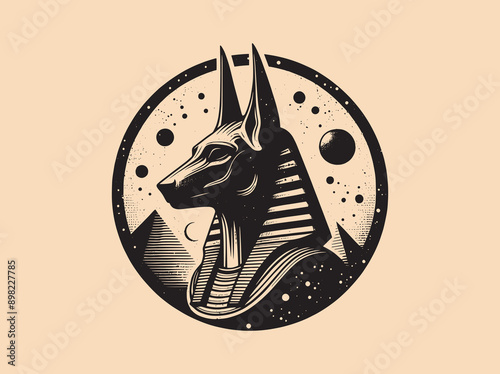 retro illustration anubis for tshirt design, badge design character with engraving ornament