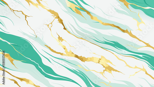 Vector art of a luxurious abstract background with swirling mint and aqua marble texture accented with gold veins
