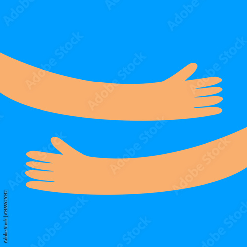 Set of human hands with different gestures collection for design, animation,Palm and finger draw icons, skin, white Long sleeved shirt, arm on blue background, flat style cartoon vector illustration.