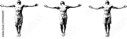 Vector outline illustration male body. Parts of body for tattoo example, sport, medical illustrations. Black and white.