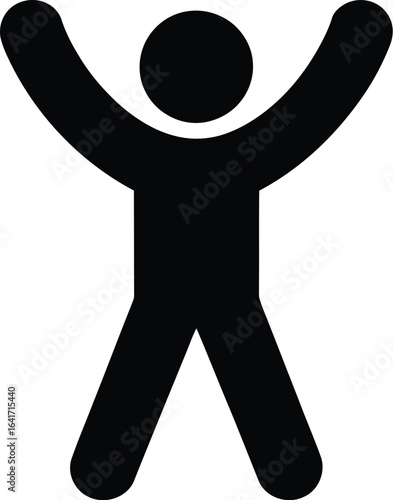 Black vector silhouettes of woman and man standing with spread arms isolated on white background