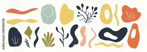 Set of boho abstract organic shape. hand drawn doodle art. vector blob