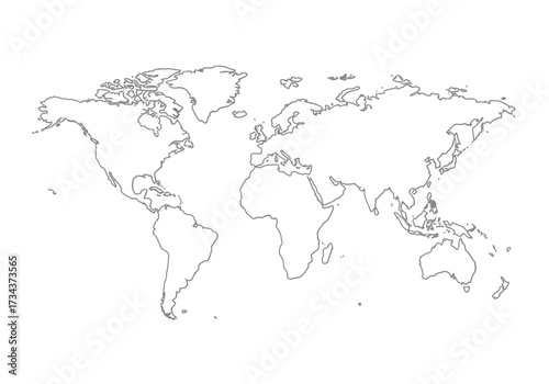 world map Line art Illustration with boundaries of continents isolated silhouette stylize