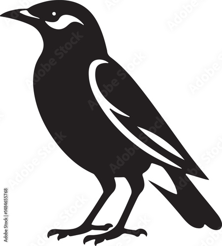 Myna Bird Black Silhouette Vector, Exotic Bird Clipart & Wildlife Graphic Design