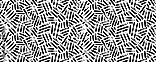 Grunge weave seamless pattern. Black and white vector wicker texture. Geometric simple print. Abstract geometric ornament. Interlacing bands, bold lines. Distressed texture of weaving fabric.