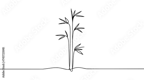 Single continuous line drawing of bamboo trees for plantation logo identity.