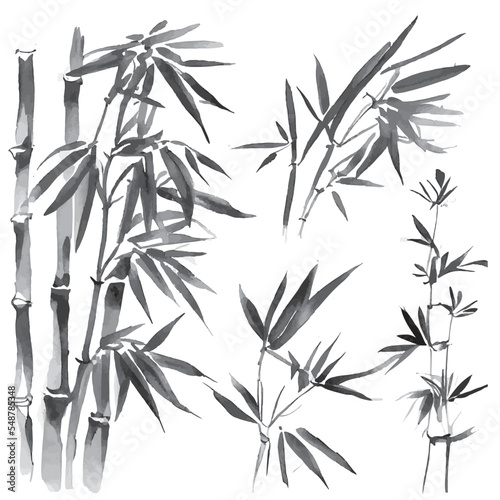 collection of watercolor bamboo plants. east art ink painting
