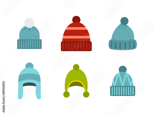 Winter hat or cap icons. Beanie collection in a flat design. Color winter hats set