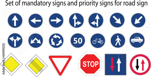 Traffic signs vector illustration collection. Set of isolated road safety symbols. Stop, yield, do not enter, parking, pedestrian crossing, traffic light, bicycle lane icons.