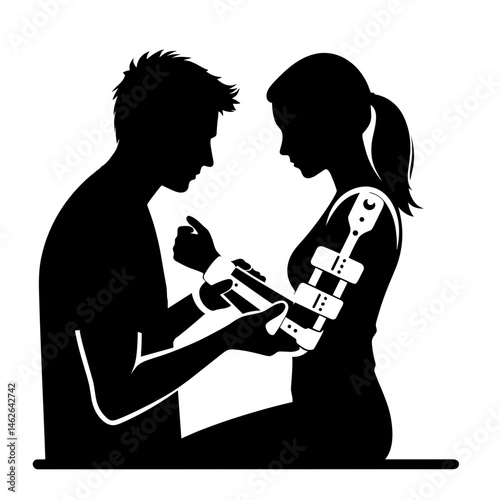 Illustrative set of prosthetic limbs and hands in black silhouette style