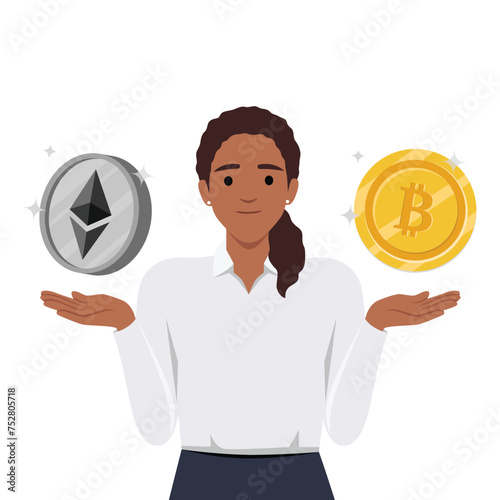 Bitcoin and etherum with a flipchart.