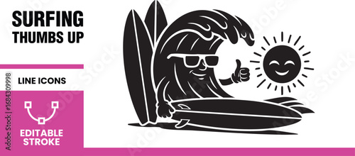 Paddleboarding icon set, depicting a person stand up paddleboarding for water sport and recreational activity concepts