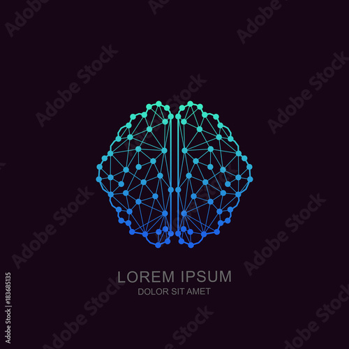 Human brain form line, triangles, and particle style design. geometric wireframe