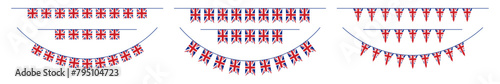 Festive flag garland vector illustration. bunting in simple flat style, isolated on transparent background. Carnival, birthday border decoration element.