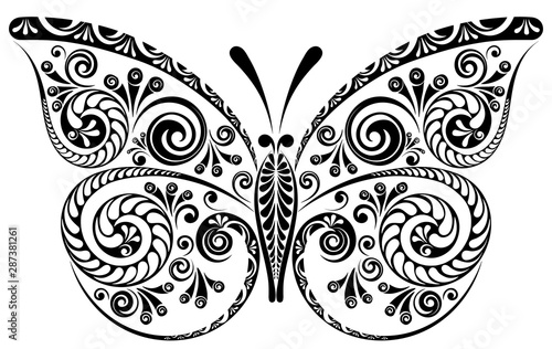 Decorative floral ornament with butterfly on white background
