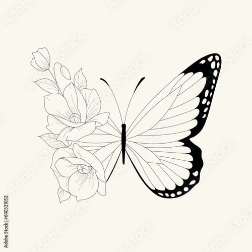 Flower floral butterfly line drawing