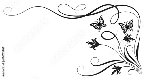 Decorative floral corner ornament with butterfly