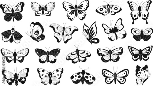 Set of monochrome graceful butterflies. Vector illustration